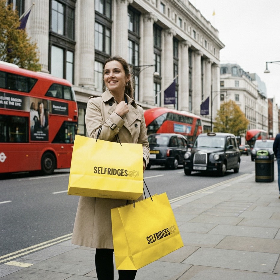 走在牛津街(Oxford Street)上,你很難忽視那棟巨大、古典又充滿氣勢的建築,更別提幾乎人手一袋的鮮黃色購物袋。那個黃色,在倫敦灰濛濛的冬天裡,簡直就是合法的多巴胺。